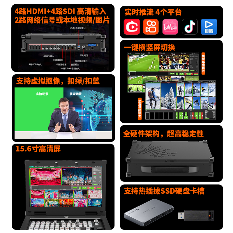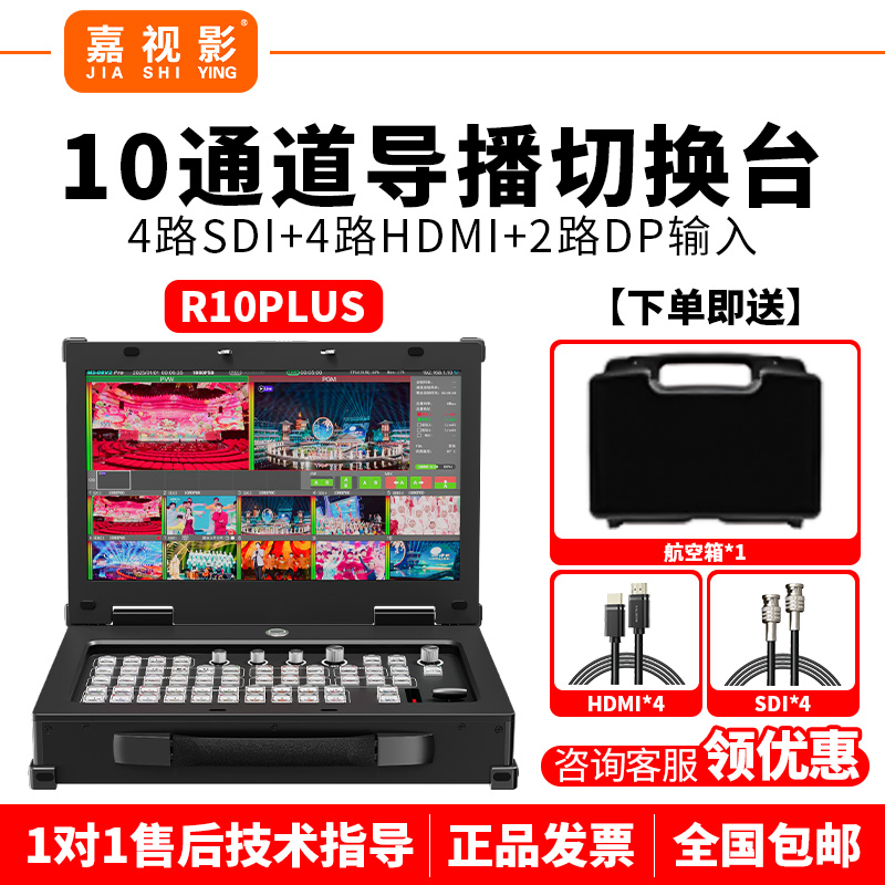 嘉视影R10PLUS 导播台8路 国产化切换台直播一体机高清 国产4路HDMI+4路SDI横竖屏UVC输出硬件直播切换台