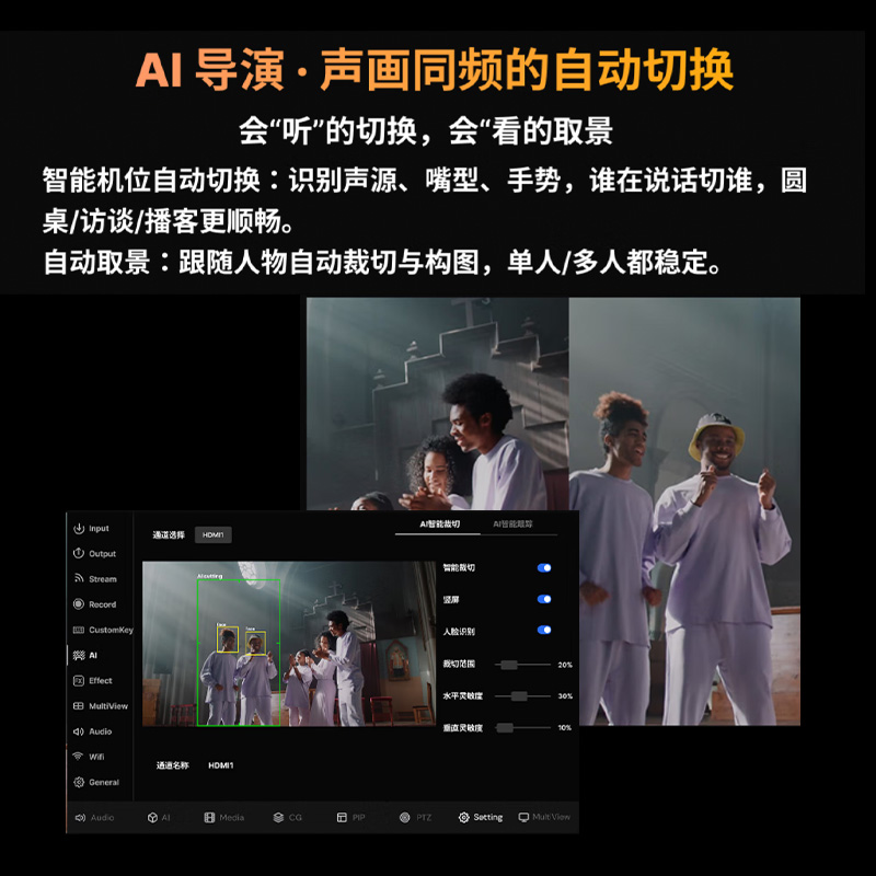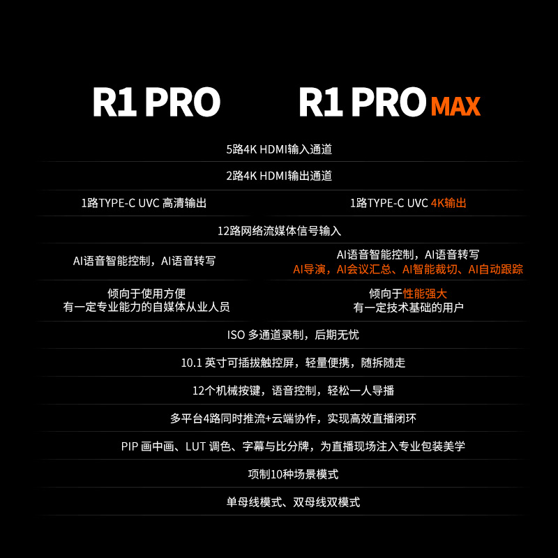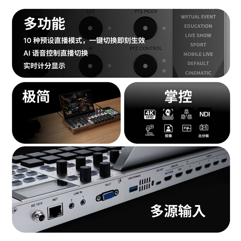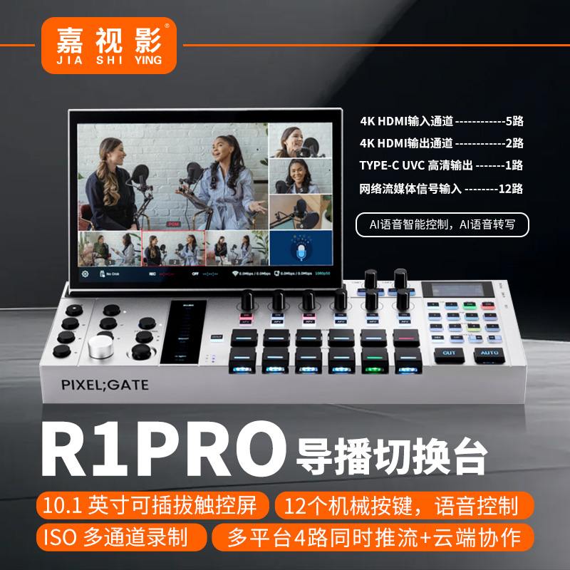 嘉视影r1pro 4K 直播导播一体机导播切换台18路通道多机位HDMI直播推流AI语音控制