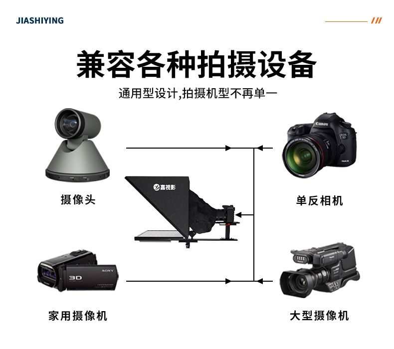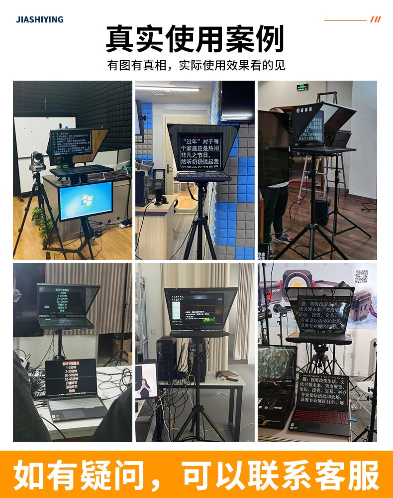 提词器框和托板采用手拧设计,安装方便,多档位安装方式,用户可根据需要,上下调整镜像屏与提词器框的角度,前后摄像机与提词器框的距离和上下调整摄像机高度等。
