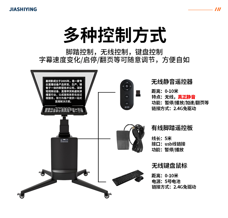9、多种控制方式,键盘、鼠标、遥控器,有线或无线控制方式,可单、双人控制,速度任意调节,文稿一键翻页;